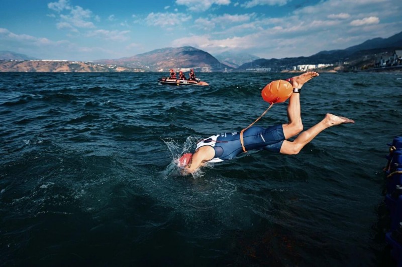 赛前,金沙江江面风浪较大。为最大限度保障参赛选手的生命安全,组委会第一时间开展现场研判,迅速做出赛程调整决策:将所有铁人三项游泳路线统一调整为“下水绕浮台一圈后上水”的形式,赛程缩短至50米。