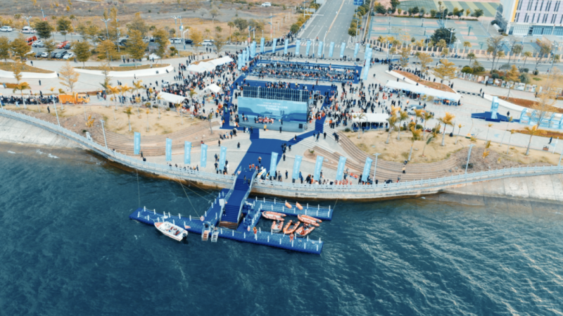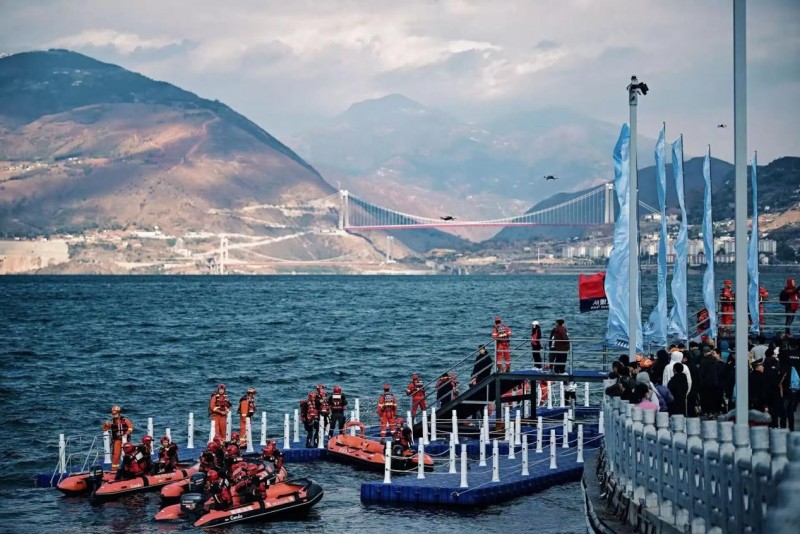 赛前,金沙江江面风浪较大。为最大限度保障参赛选手的生命安全,组委会第一时间开展现场研判,迅速做出赛程调整决策:将所有铁人三项游泳路线统一调整为“下水绕浮台一圈后上水”的形式,赛程缩短至50米。